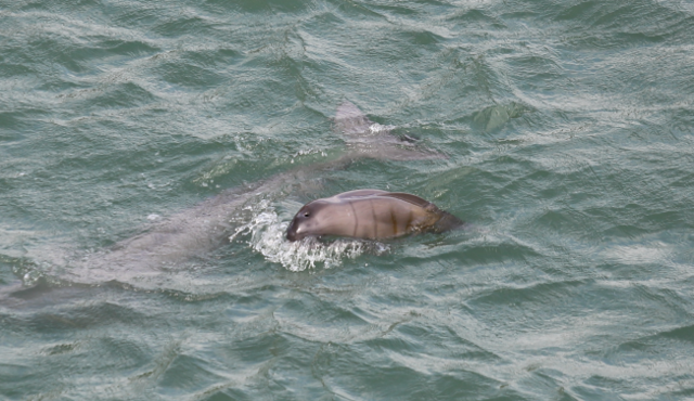 환경부 산하 국립공원공단은 경남 남해 한려해상국립공원 인근 사천 바다에서 만삭 상태의 상괭이가 숭어를 사냥하고, 새끼를 양육하는 모습 등을 포착했다고 밝혔습니다.