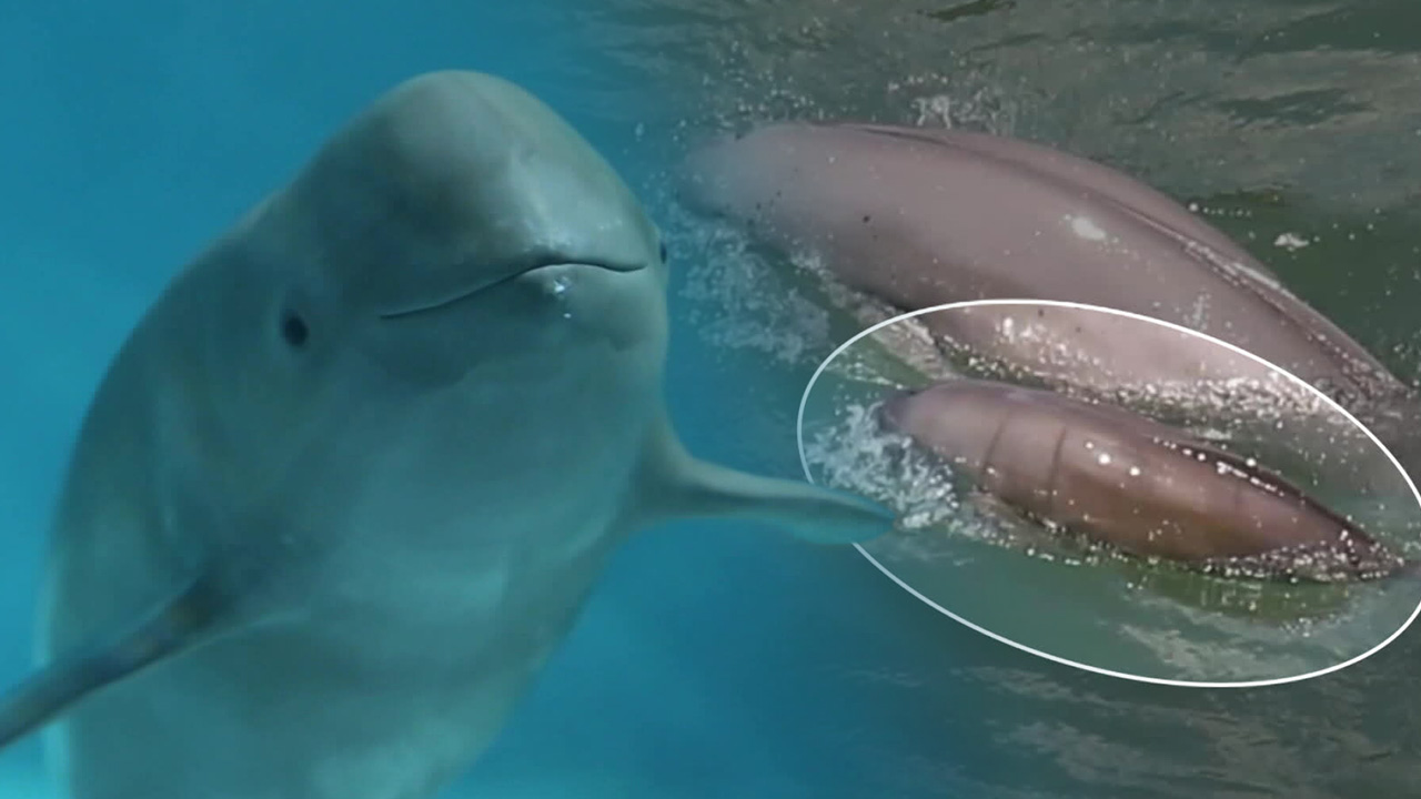 ◆ 만삭 돌고래 '3회전' 처음 봐, 아기한테 바다 느낌 알려주는 거야?
