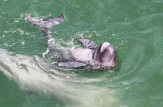 이빨고래류 쇠돌 고래과에 속하는 상괭이는 머리가 둥글고 등지느러미가 없는 것이 특징입니다. 우리나라 토종 돌고래로 얼굴이 미소를 짓는 듯한 모습이어서 '웃는 고래'라고 불립니다. 몸길이는 태어났을 때 72~85㎝, 다 자라면 최대 2m 정도이며 우리나라 연안과 더불어 일본·중국 바다에도 산다고 합니다.