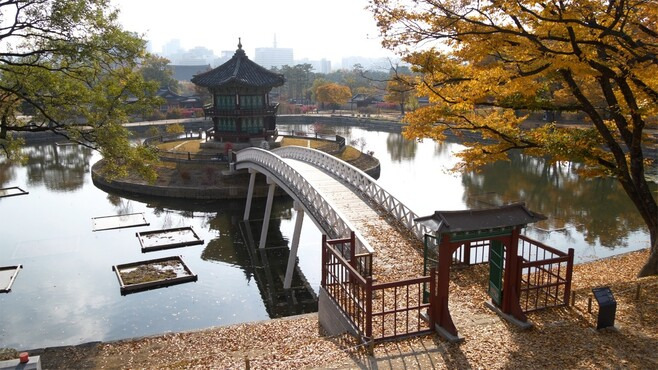 경회루는 경복궁 내에 있는 아름다운 연회 공간으로, 왕과 신하들이 연회를 열거나 중요한 회의를 하던 곳입니다. 자연과 어우러진 연못 가운데에 위치하여 아름다움을 자아냅니다.