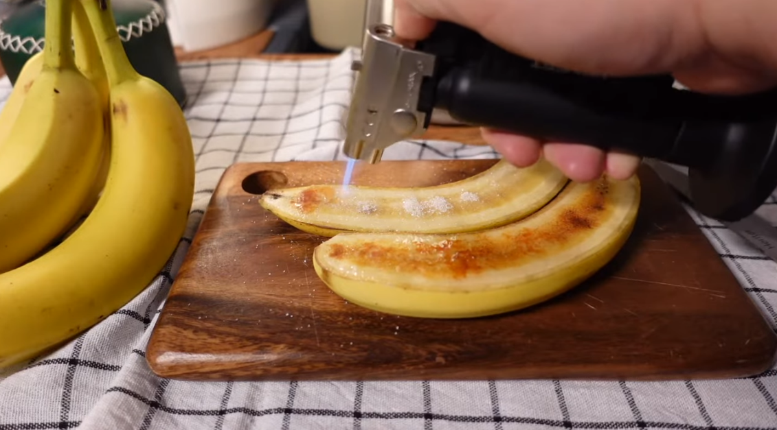 ▶ 재료 : 황설탕 두 큰 술, 바나나 하나, 토치