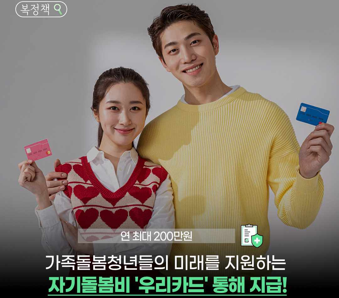 우리 카드에서는 이외에도 별도의 전산 관리시스템을 통한 안전하고 편리한 지급은 물론, 사용자들이 주로 어떤 용처로 자기 돌봄비를 사용하는지 통계를 추출하고, 개인정보 보안 등의 정책적·행정적 지원도 해나갈 예정이랍니다.
