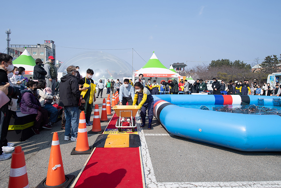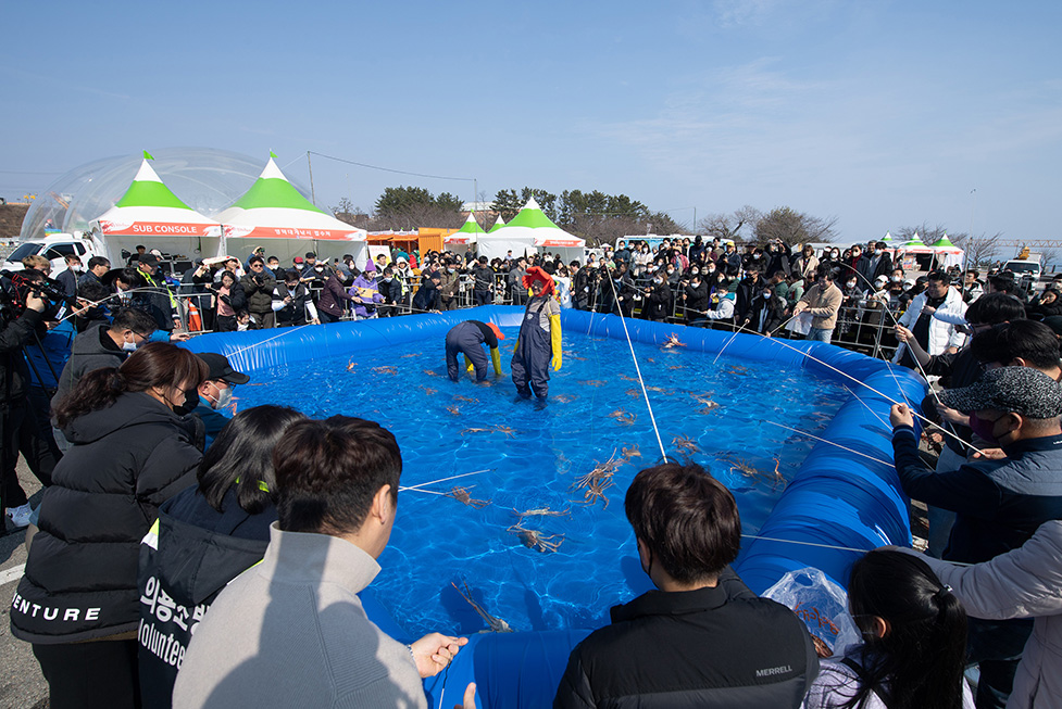 - 대형수조를 설치하여 진행하는 영덕대게낚시(지정시간 일반부와 어린이부로 진행)