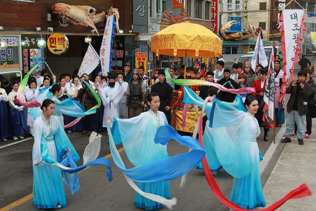 - 거대 대게 캐릭터 등 움직이는 대형 인형을 선두로, 9개 읍면의 풍물패가 각 마을의 스토리를 담아내는 가장행렬 퍼레이드