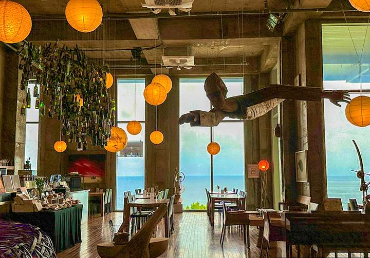 하슬라아트월드는 실내 전시 공간이 풍부하여 다채로운 작품을 만나며 많은 영감을 얻을 수 있습니다. 아비지 특별 갤러리에서는 작가의 개성이 엿보이는 설치미술과 화려한 색감의 조각품들이 시선을 사로잡습니다. 통창 너머로는 동해가 보여 예술 작품과 바다가 조화를 이루는 이색적인 장면을 연출합니다.