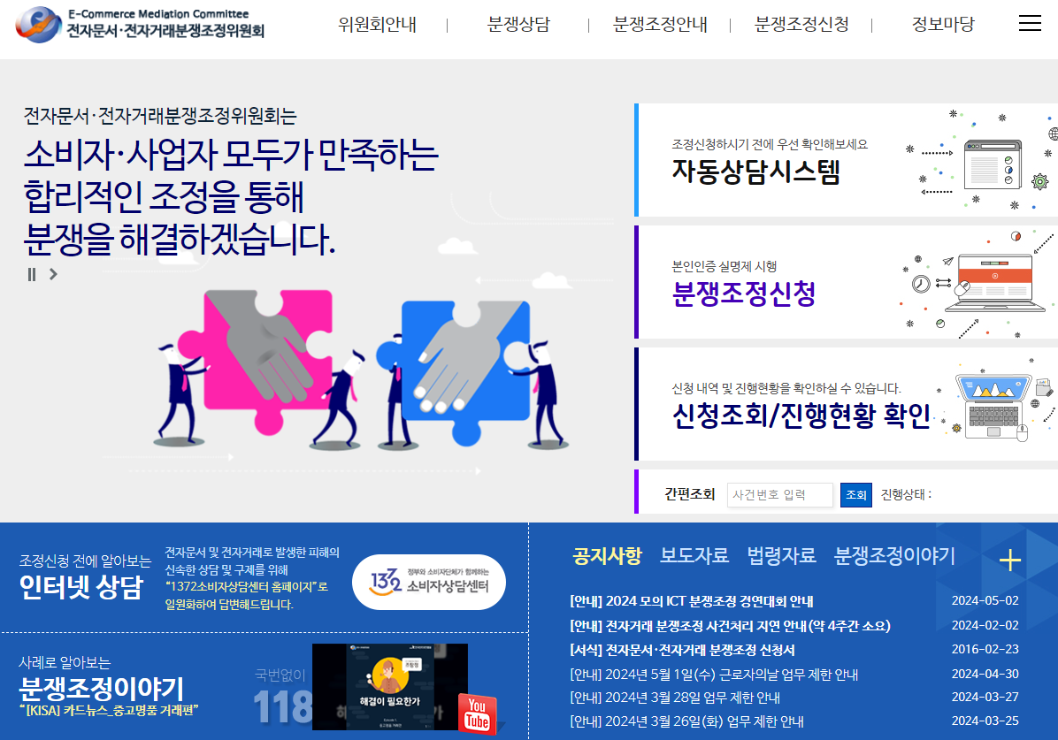 ☛ 전자문서·전자거래 분쟁조정위원회 분쟁조정 신청 >>>