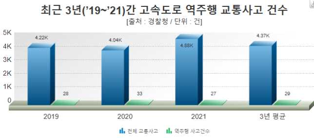 3. 2019~2021년 고속도로 역주행 교통사고 현황