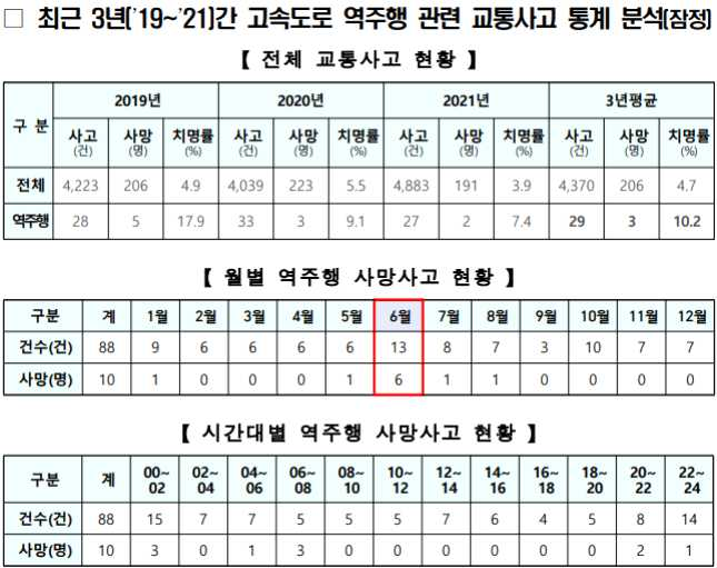 ▶ 특히, 역주행 사고 중 1건은 자정부터 새벽 6시 사이 '밤길 운전' 도중 발생한 사고