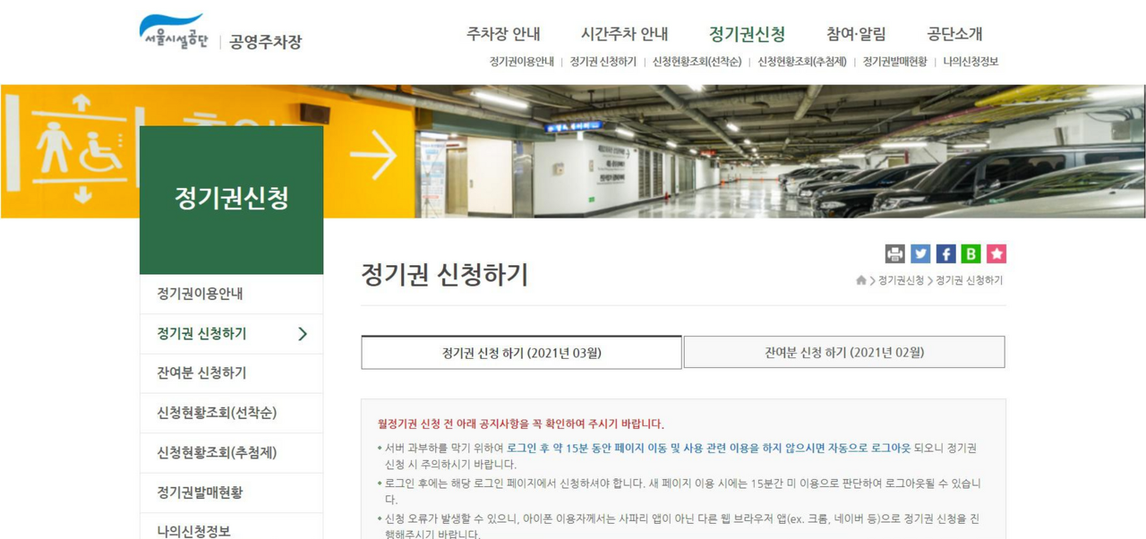 공영주차장의 정기권을 구입할 수 있다는 사실, 알고 계셨나요? 공영주차장 정기권 구입을 원하는 분들은 해당 지자체의 시설관리공단이나 도시관광공사에서 운영하는 공영주차장 홈페이지를 통해 온라인으로 신청 가능합니다. 홈페이지에서 정기권 발매 일정을 확인 후에 일정에 맞춰 신청하시면 됩니다.