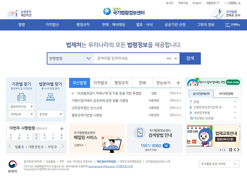 ◆ 국가법령정보센터 메인화면
