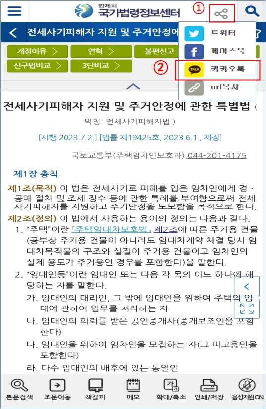 ▶ 1위를 차지한 국가법령정보센터 웹사이트(법제처)는, 개별 조문을 발췌해 자신만의 법령집을 만들 수 있는 '나만의 법령집' 기능을 추가하고, 법령을 카카오톡 등 SNS에 공유할 수 있도록 했습니다.