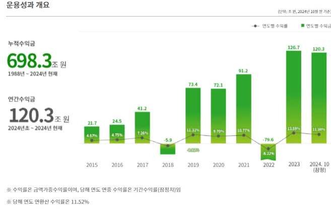 국내와 해외, 주식과 채권으로 나누어 투자하고 있기는 하지만 마음만 먹으면 우리나라 증시 전체를 쥐락펴락할 수 있는 자금력이 있는 셈입니다.