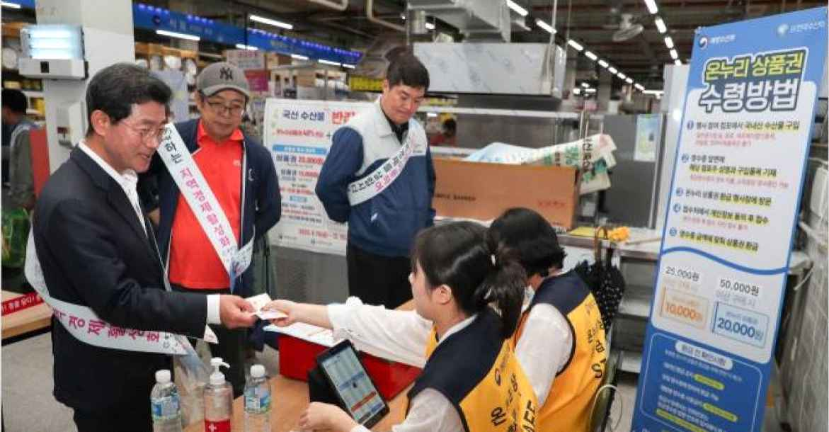 먼저 주요 관광지 수산시장과 전통시장 등에서 국산 수산물을 구매한 소비자들에게 구매 금액에 따라, 최대 2만 원까지 온누리상품권을 지급하는 '7월 온누리상품권 환급행사'를 개최합니다. 이번 행사는 오는 7월 6일부터 12일까지 전국 50개 전통시장에서 진행됩니다.