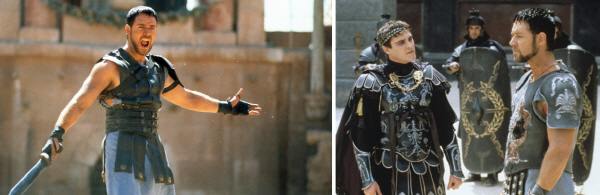 주인공인 '막시무스'(러셀 크로우)는 정의롭고 착하고 강직한 검투사입니다. 빌런 '콤모두스'(호아킨 피닉스)는 비열하고 야비하고 정치적인 차기 황제 후보입니다.