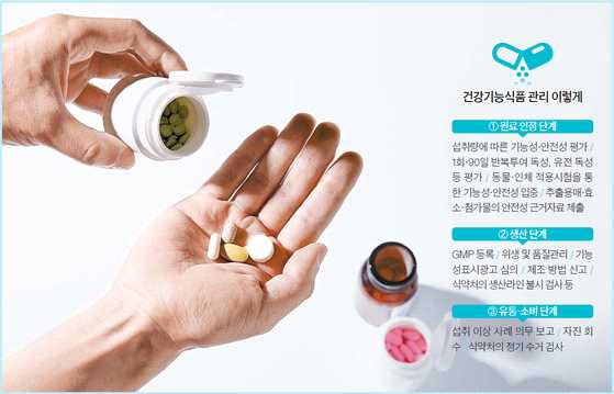 - 식품의약품안전처는 동물시험, 인체 적용시험 등 과학적 근거를 평가하여 기능성 원료를 인정하고 있으며, 건강기능식품은 이런 기능성 원료를 가지고 만든 제품