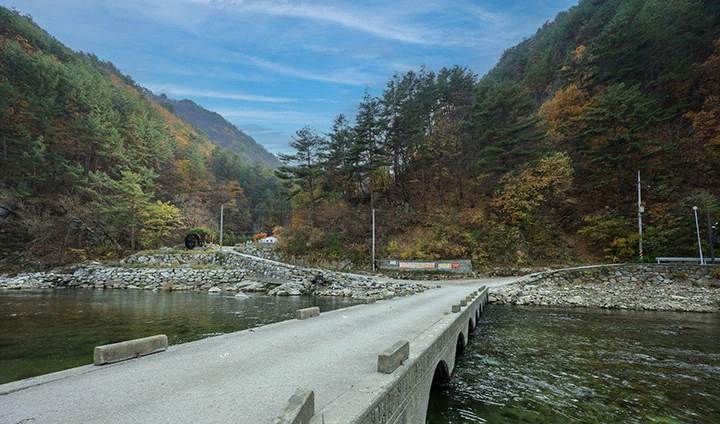 19년을 홀로 역사를 지키던 역무원은 사라졌지만, 그가 담벼락에 남긴 시는 비석이 되어 승부역을 지키고 있다. 승부역 계곡을 건너면 낙동정맥트레일 2구간이 시작된다.