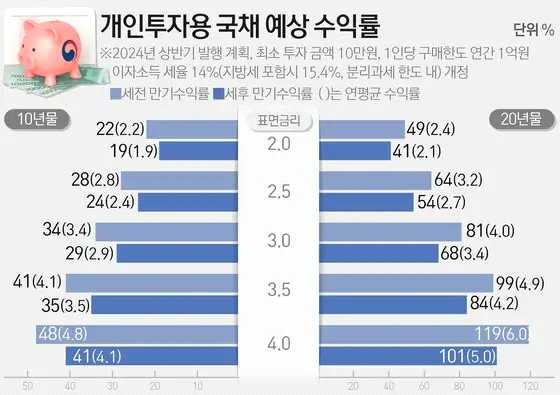 하지만 정치권 여야 양당이 시행 여부를 두고 다투고 있는 금융투자소득세가 만약 시행되면, 채권의 절세 효과가 크게 감소할 수 있으므로, 2025년 1월로 예정된 시행 여부를 지켜볼 필요가 있습니다.
