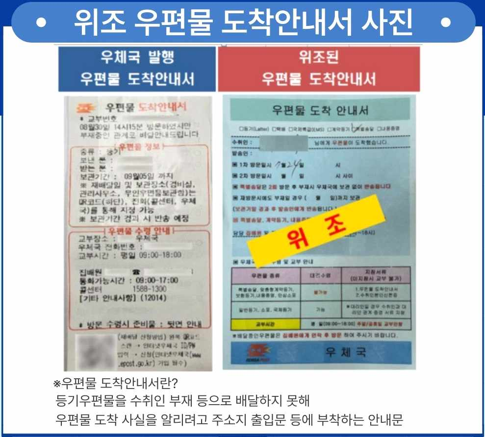 ▶ 위조 우편물 도착 안내서 '레터 피싱' 주의