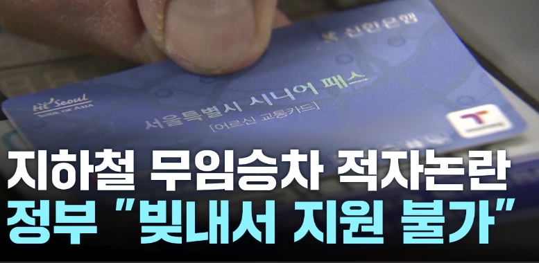 지하철 노인 무임승차 얘기가 요즘 뉴스에 많이 나오고 있습니다. "무임승차 때문에 부담되니까 돈 달라!"라는 서울시 vs "지방자치단체가 알아서 해결할 일이라 못 준다!"라는 정부가 맞서고 있는 실정입니다.
