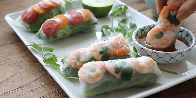 ④ 준비된 라이스페이퍼 위에 손질된 재료를 모두 넣고 말아 주세요.