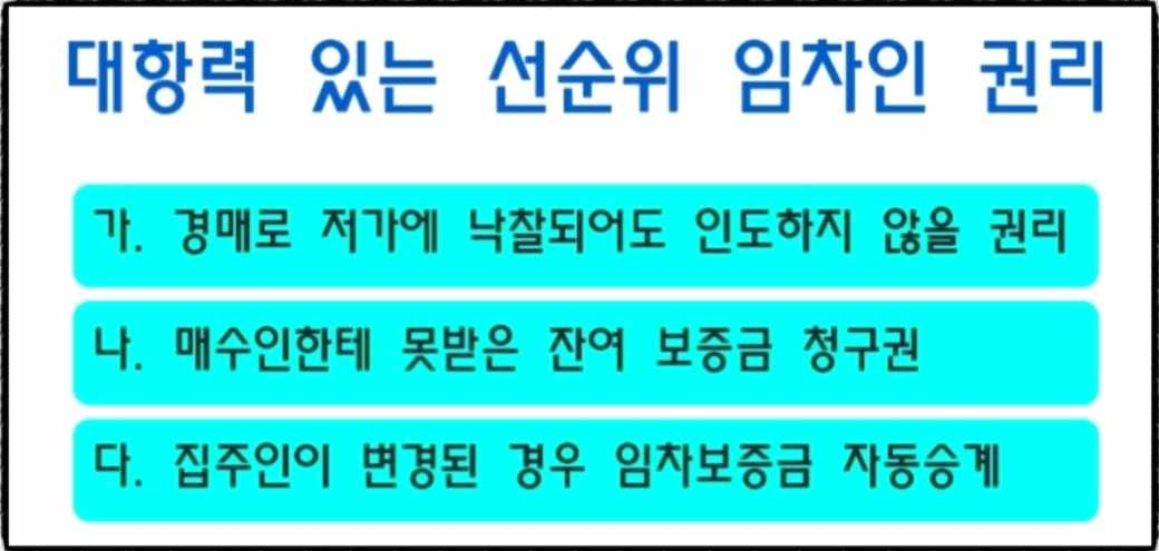 대항력이란 집주인이 중간에 바뀌더라도 계약기간 내 집에서 거주할 수 있는 권리와 계약만료 후 보증금을 돌려받을 권리를 말합니다.