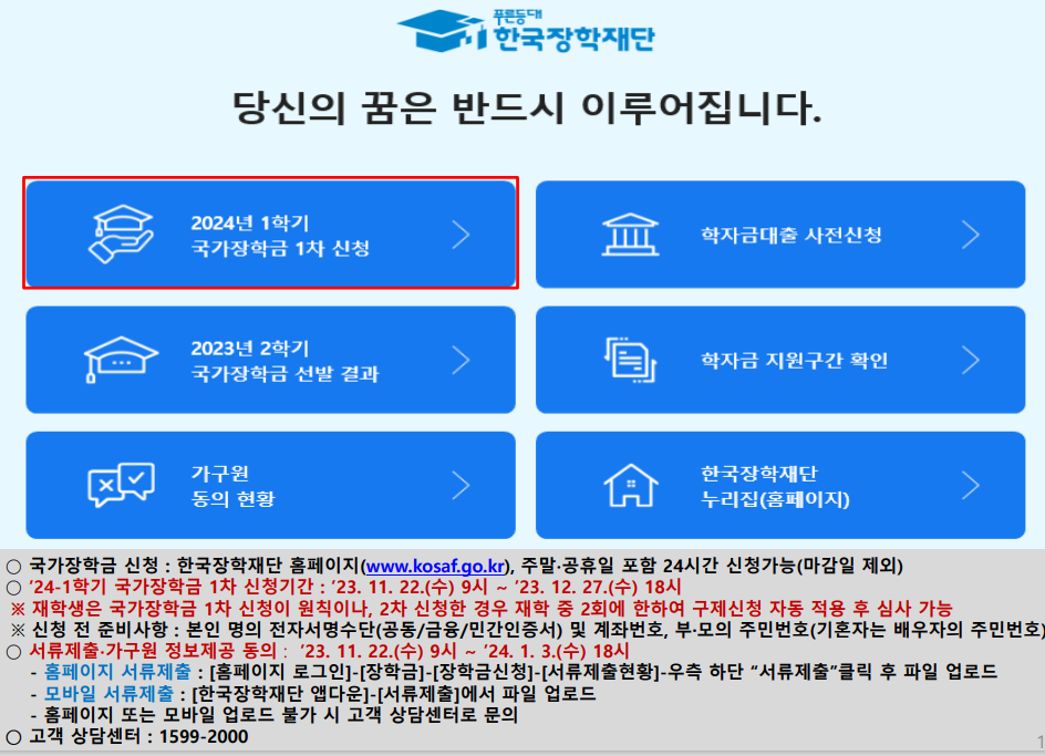 ▶ 전화문의 : 한국장학재단 상담센터 (☎ 1599-2000)