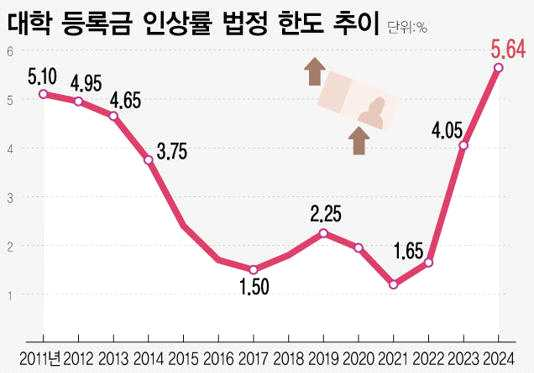 교육부는 2024학년도 대학 등록금 법정 인상 한도를 5.64%로 하는 내용의 「2024학년도 대학(대학원) 등록금 인상률 산정 방법」을 공고하였습니다.