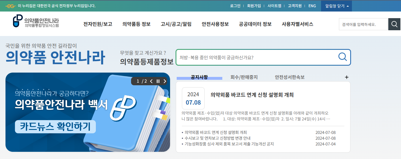 모기 기피제의 의약외품 허가(신고) 여부는 의약품 안전 나라(nedrug.mfds.go.kr ) > 의약품 등 정보 > 의약품 등 정보검색(의약외품)에서 제품명으로 확인하세요.