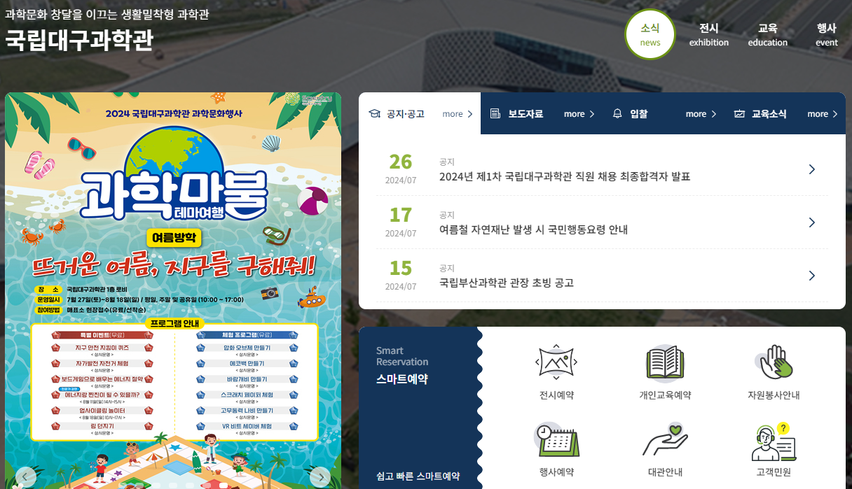 * 자세한 내용 : 국립과천과학관 누리집 > 소통 및 소개 > 공지/공고 > 2024년 여름방학 과학관 주요 프로그램