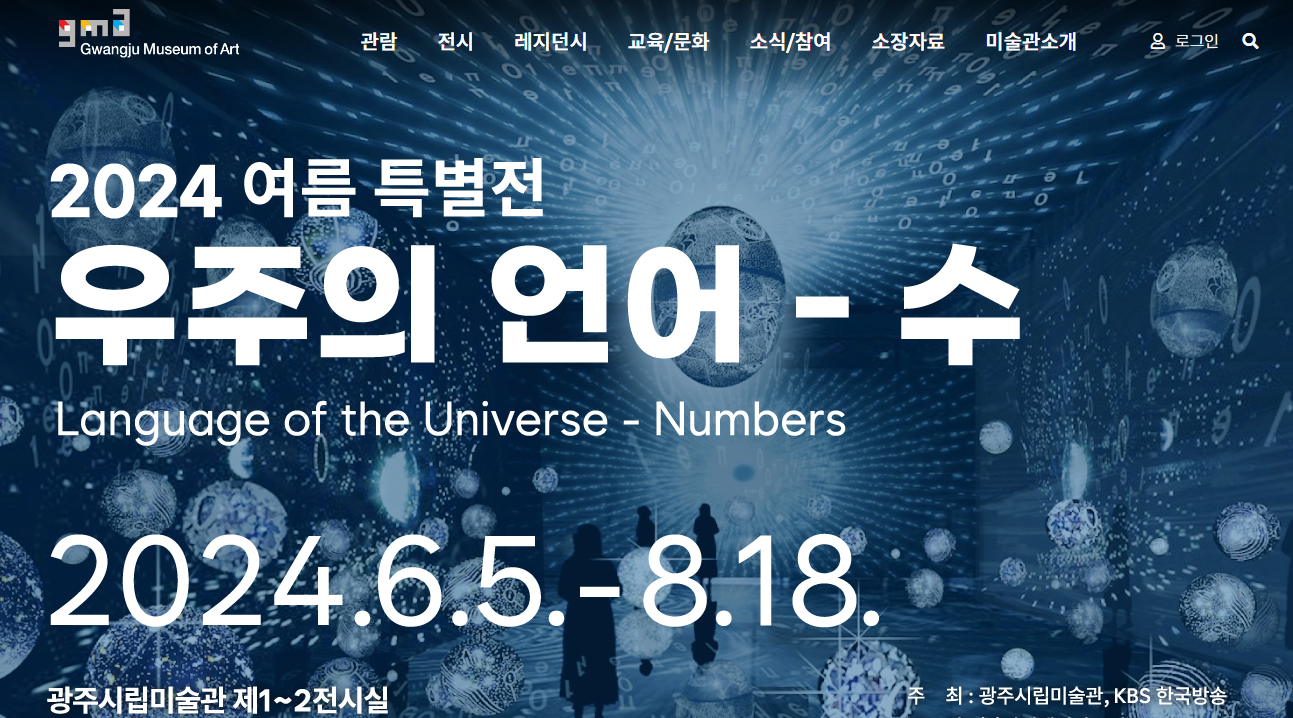 현재 광주시립미술관에서는 '우주의 언어 - 수'라는 주제로 2024년 여름 특별전을 개최하고 있습니다. 이 특별전은 시립미술관 본관 제1, 2 전시실에서 관람할 수 있으며, 성인은 12,000원, 청소년은 8,000원, 어린이는 6,000원으로 관람할 수 있습니다.