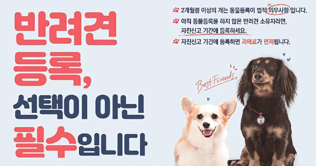 자진신고 기간에 등록하면 과태료가 면제되기 때문에 이 기간을 이용해 반려견 등록을 하는 것도 좋겠습니다.