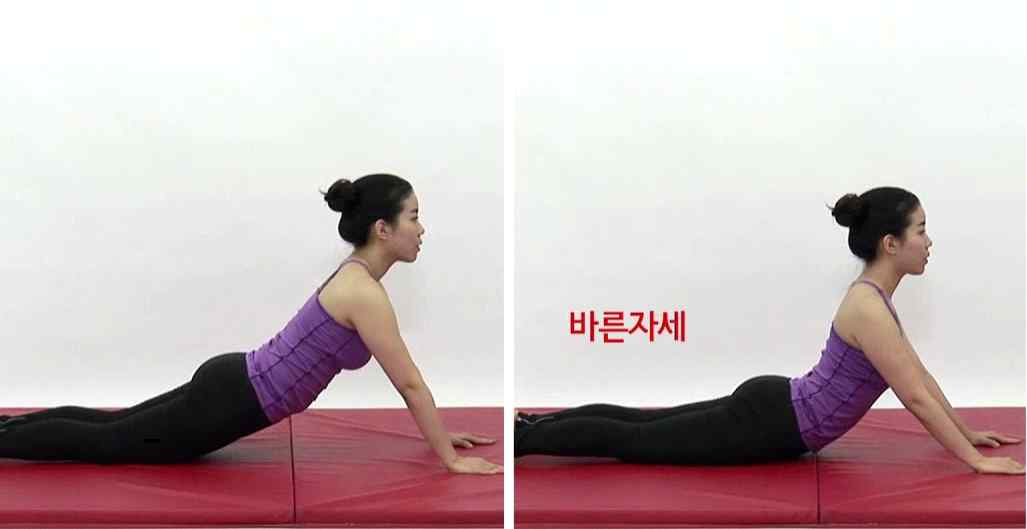 * 방법: 엎드린 상태에서 상체를 일으키며 허리를 쭉 편다.