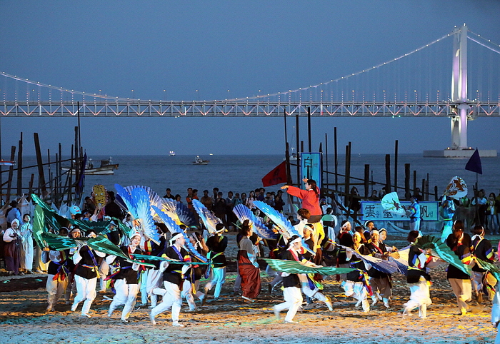 광안리 어방축제는 어민들이 고기잡이의 피로를 잊고 서로의 수고를 위로하며 기분을 돋구던 어방놀이를 재현하는 행사입니다. 특히 좌수영어방놀이는 중요무형문화재 제62호로 지정된 소중한 전통입니다.