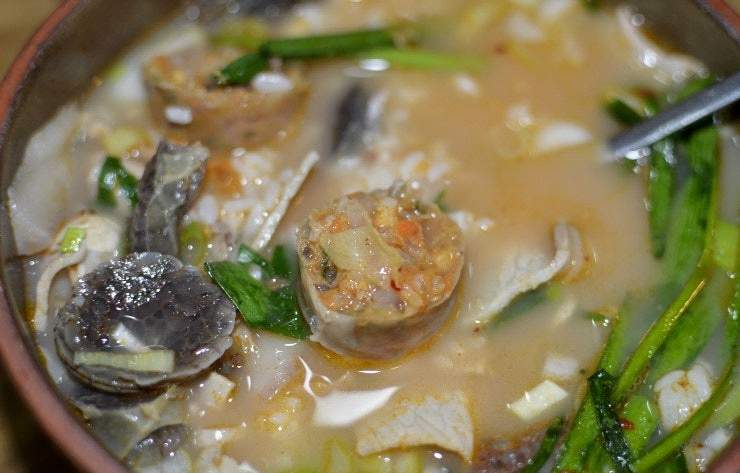 돼지 뼈를 24시간 이상 푹 삶아서 만든 육수로 돼지국밥을 만듭니다. 돼지 뼈의 진한 맛이 우러나기 때문에 별도의 간을 하지 않고도 본연의 맛을 즐길 수 있으며, 국물에 면을 넣고 만든 돼지 라면도 별미입니다.