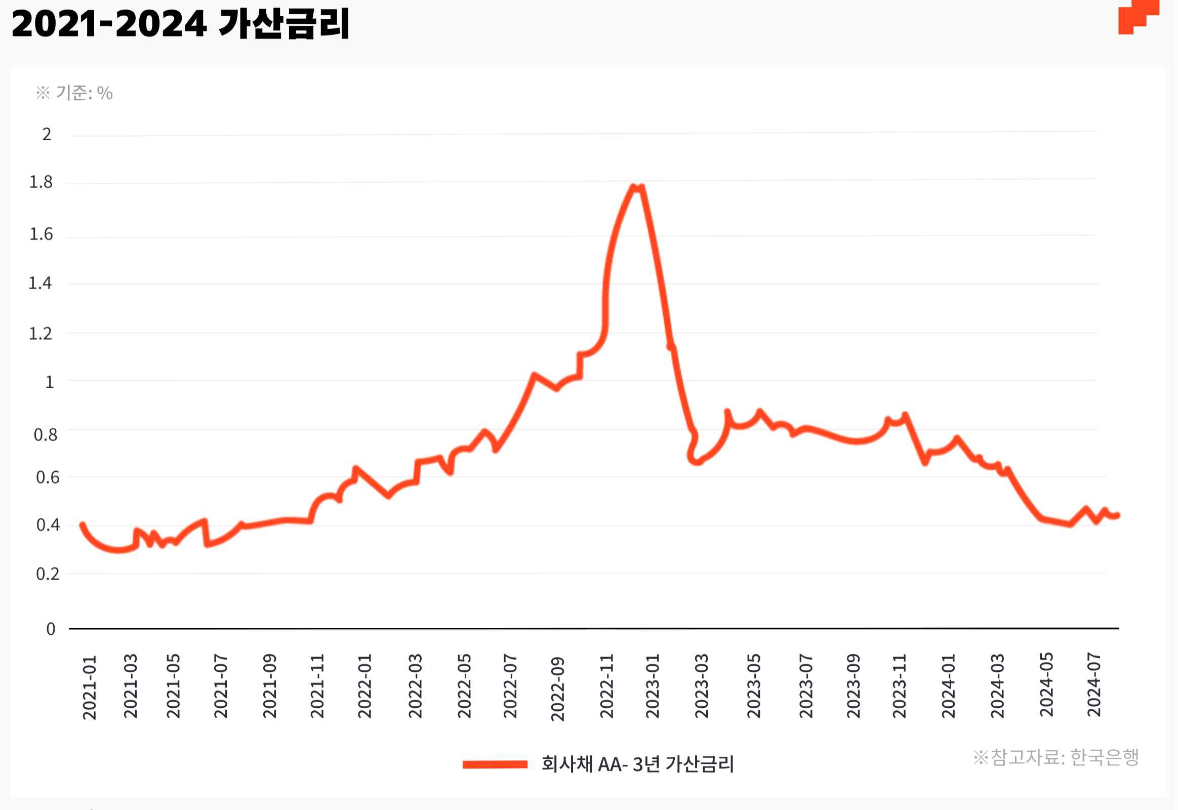 * 가산금리 = (개별) 채권금리 - 국채금리