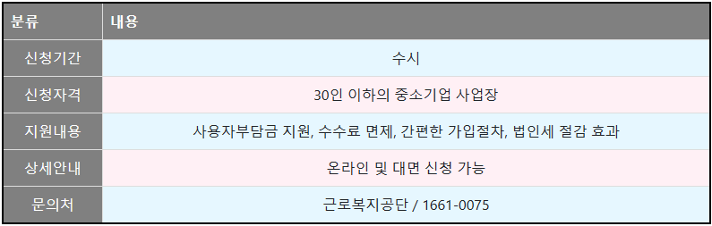 - 중소기업(30인 이하) 근로자의 안정적인 노후생활 보장을 지원하기 위하여, 둘 이상의 중소기업 사용자 및 근로자가 납입한 부담금 등으로 공동의 기금을 조성·운영하여 근로자에게 급여를 지급하는 제도
