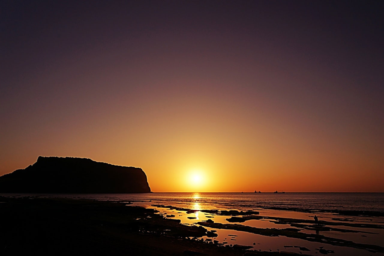 하지만 여기에서 꿀팁, 힘들게 정상까지 올라가지 않아도, 광치기해변에서는 멋진 성산일출봉의 실루엣과 일출을 한눈에 담을 수 있답니다.