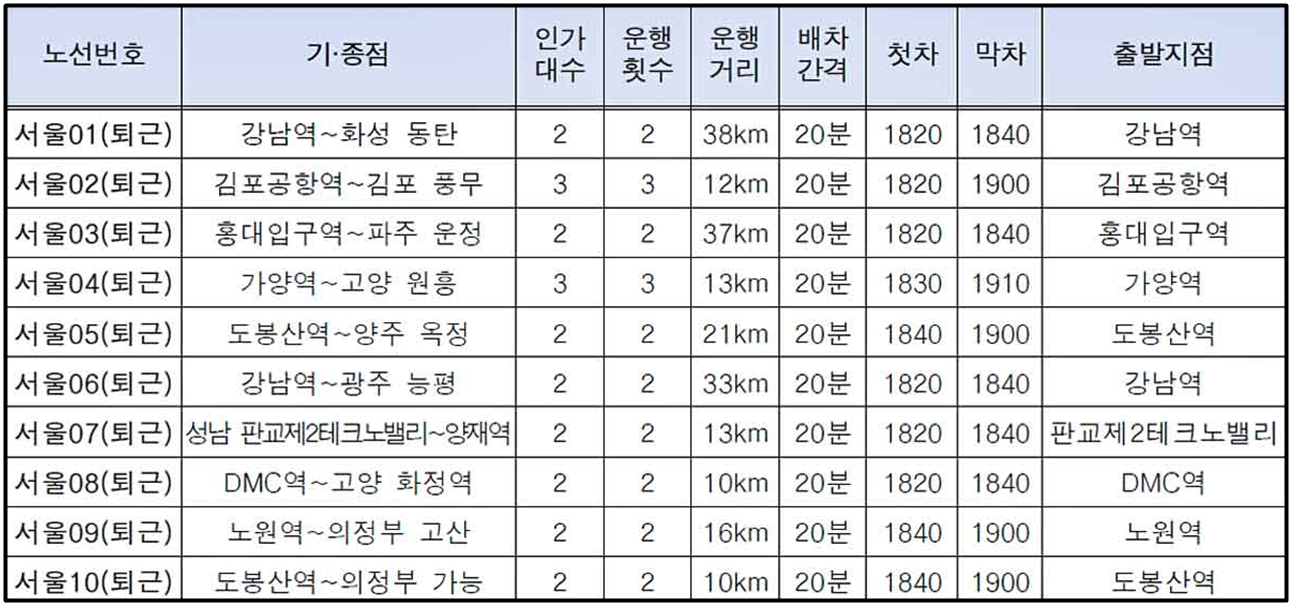 1. 서울 동행 버스 퇴근길 운행 개시
