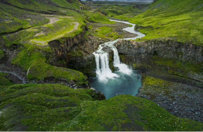스코가포스는 에이야피얄라요쿨과 미르달스요쿨이라는 두 개의 빙하에서 직접 강물이 공급된다는 점이 독특합니다. 화창한 날에는 거대한 분출구에 의해 만들어지는 쌍무지개가 방문객을 맞이합니다.