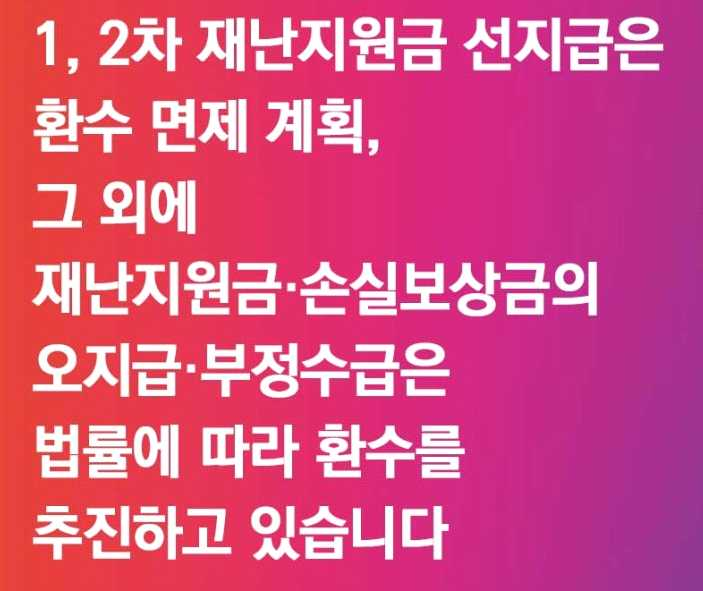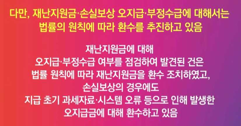 - 그 외에 재난지원금, 손실보상금의 오지급, 부정수급은 법률에 따라 환수를 추진