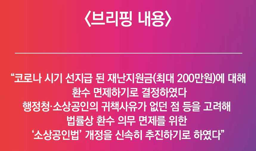 코로나19 때 소상공인에 선지급된 재난지원금 관련 개요