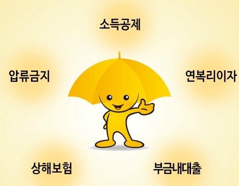 압류 · 양도 · 담보 제공을 금지해 미래의 생활안정자금을 확실히 보장한다는 것이 특징이며, 본래 명칭은 '노란 우산공제'였으나, 2019년 12월부터 '노란 우산'으로 명칭을 변경했습니다.