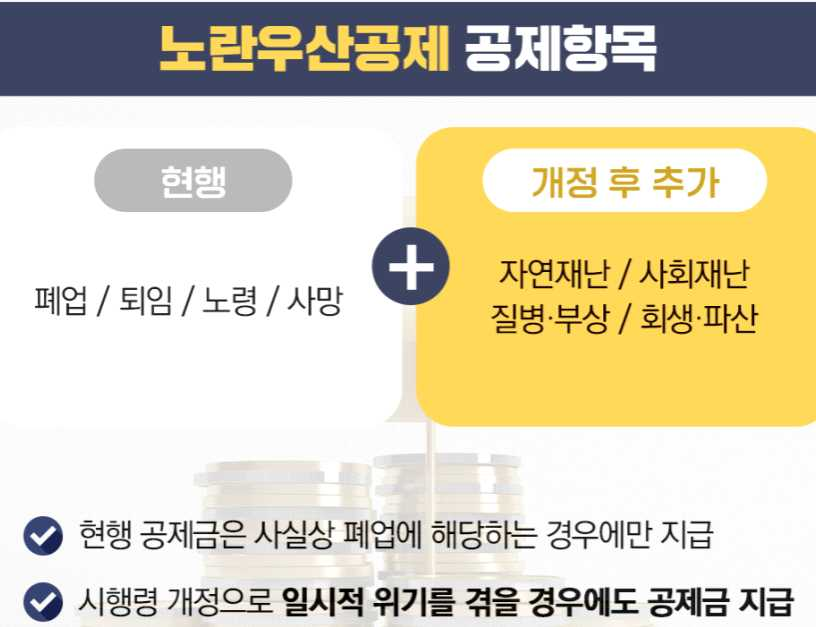 - (현행) 폐업, 퇴임, 노령, 사망 → (추가) 자연재난, 사회재난, 질병‧부상, 회생‧파산