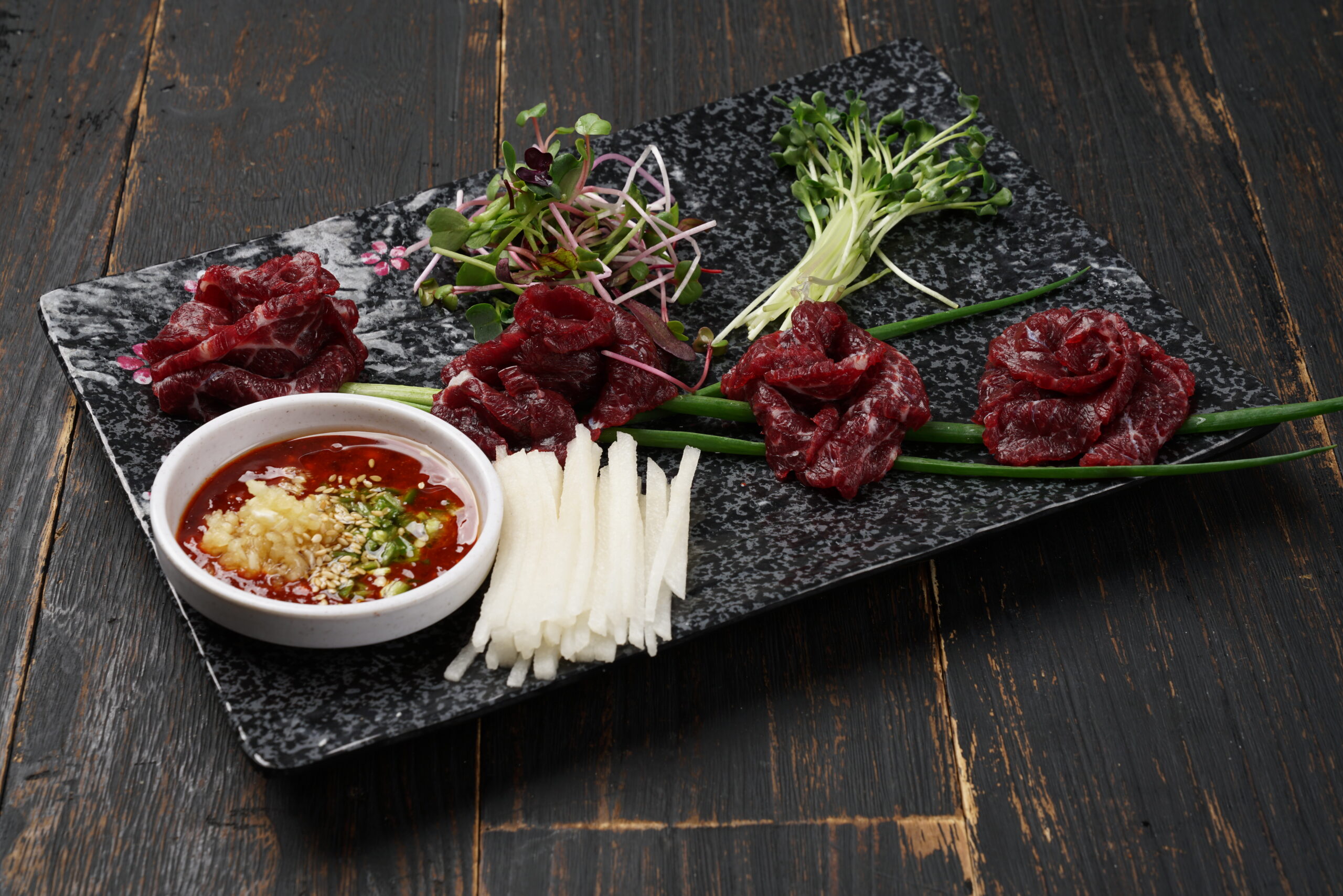 수원을 대표하는 음식 중 하나인 수원 왕갈비는 큼지막한 갈빗대에 얇게 포를 뜬 고기를 돌돌 말아서 내어주는 요리로, 소금을 베이스로 한 양념에 고기를 재운 덕분에 부드러운 식감이 특징입니다.