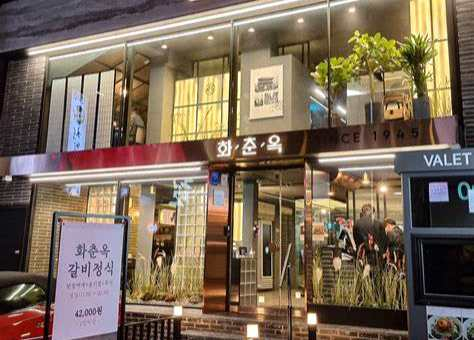 수원 왕갈비의 원조인 화춘옥, 이곳은 수원 갈비의 시초로 알려져 있으며, 수원 왕갈비의 명성을 널리 알리는 데 큰 역할을 했습니다.