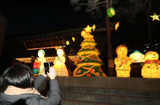 조계사 일주문 앞에서, 크리스마스트리등 점등식 진행