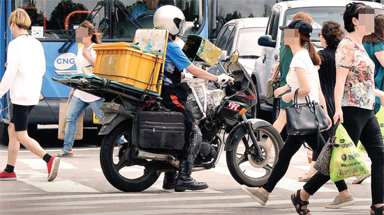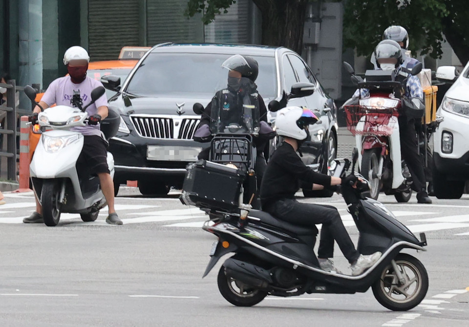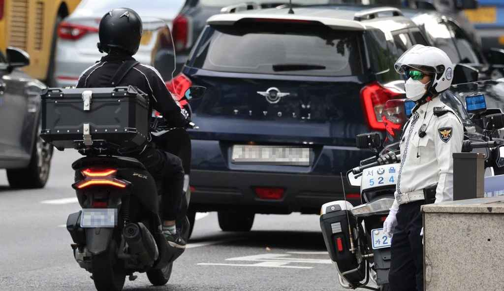 경찰이나 순찰차가 있는데도 오토바이가 차량 사이사이를 지나갈 때가 있습니다. 이때 오토바이 운전자가 헬멧도 쓰고 천천히 가는 경우라면, 좀 신경 쓰이기는 해도 법규 위반이라고 생각하지는 않지만, 이륜차가 자동차 사이로 가는 행위는 엄연히 '끼어들기 금지 위반'입니다.