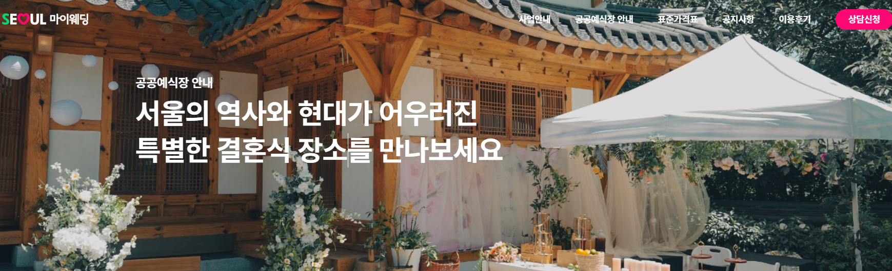 그러다 우연히, 아니 운명처럼 '서울 마이 웨딩' 혜택을 받을 수 있는 장소를 발견했습니다. 서울 마이 웨딩은 서울시에서 공원이나 한옥 같은 멋진 시설들을 예식장으로 개방하고 결혼식을 지원하는 사업이었습니다.