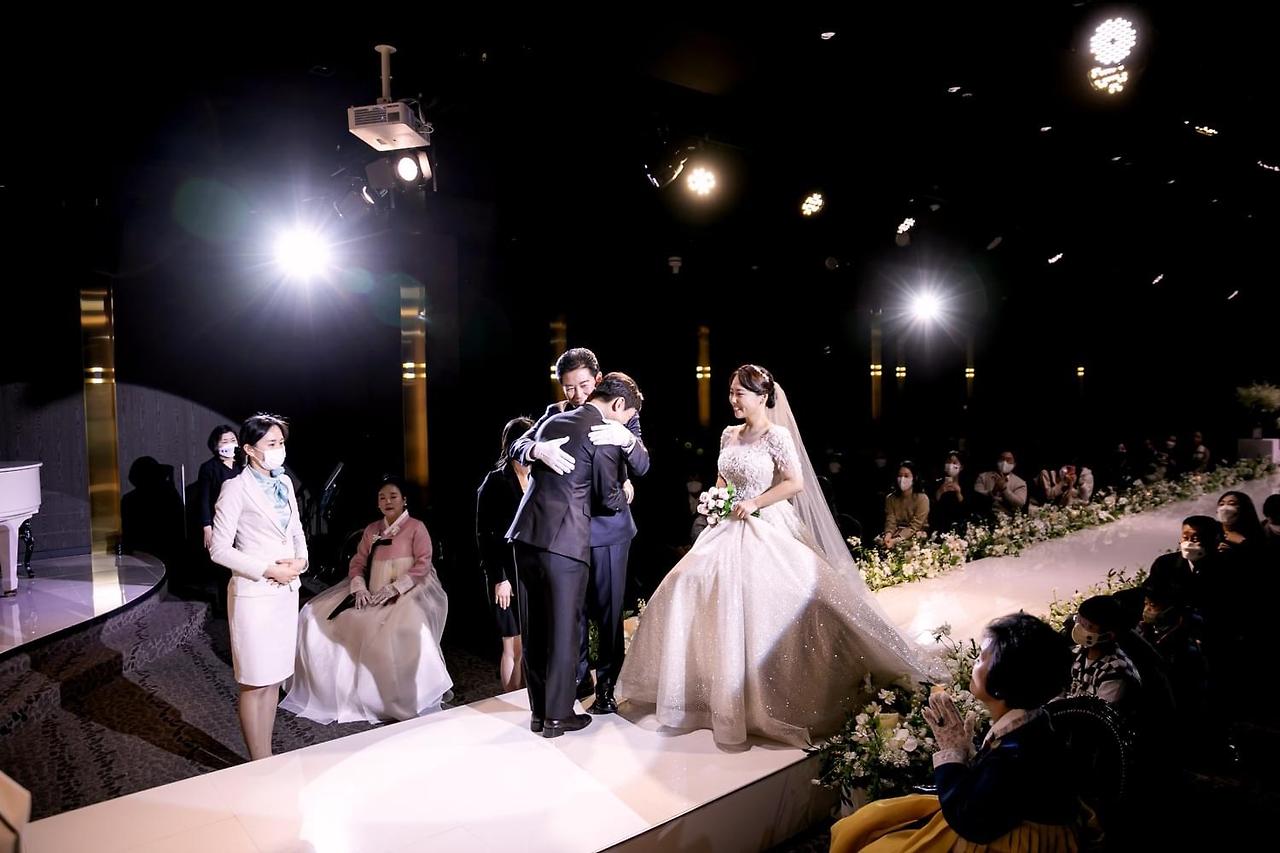 신부 대기실은 신부가 앉아서 쉽게 일어나거나 친구들을 맞이하기 힘든 구조였고, 버진로드는 높이 있는 무대 형식이라 하객들과 가깝지 못한 점이 아쉬웠습니다.
