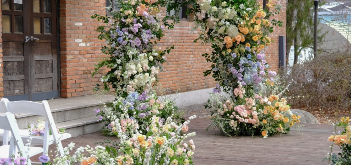 또, 경건하고 어딘가 엄숙하기까지 한 버진로드보다는, 걷다가 넘어져도 하나의 해프닝처럼 서로 웃을 수 있는 편안하고 친근한 분위기를 원하게 되었습니다. 그러다 보니 자연스럽게 머릿속에 야외결혼식장이 떠오르게 되었답니다.